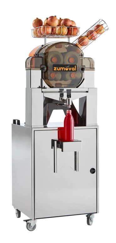The pulp-out stand is the ultimate stand for supermarkets, allowing you to wipe the seeds directly into the waste bin inside the stand. It has been developed for places where a large amount of cups or bottles are filled by the owner or the customer.