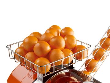 The Big Basic is equipped with a stainless steel feeder basket, which has a capacity of 5 kg of oranges.