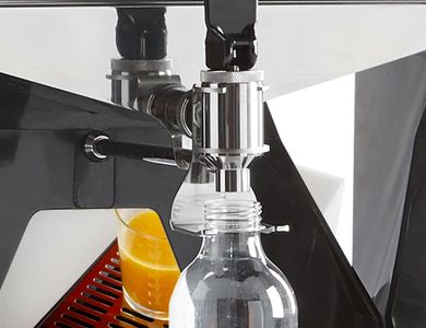 The stainless steel self service tap is specially designed for self service all day long. By opening the tap, the machine starts squeezing and by closing the tap the machine stops. By turning around the handle of the tap, you can choose between continuous or discontinuous filling.